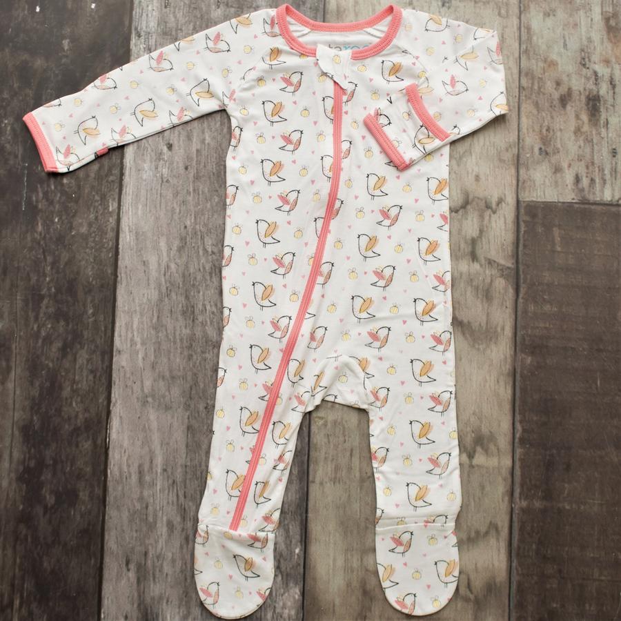 Our amazingly soft footies will keep little one's super cozy and snuggly from top to bottom! These soft as a baby's bottom footies are perfect for year round lounging. Zipper from neckline to those adorable little chubby feet make for easy breezy changing. We also made sure to add built in fold over hand mittens to prevent scratching and worry free zip tabs to keep zippers away from little chins. Made with super soft Lenzing Micromodal ©