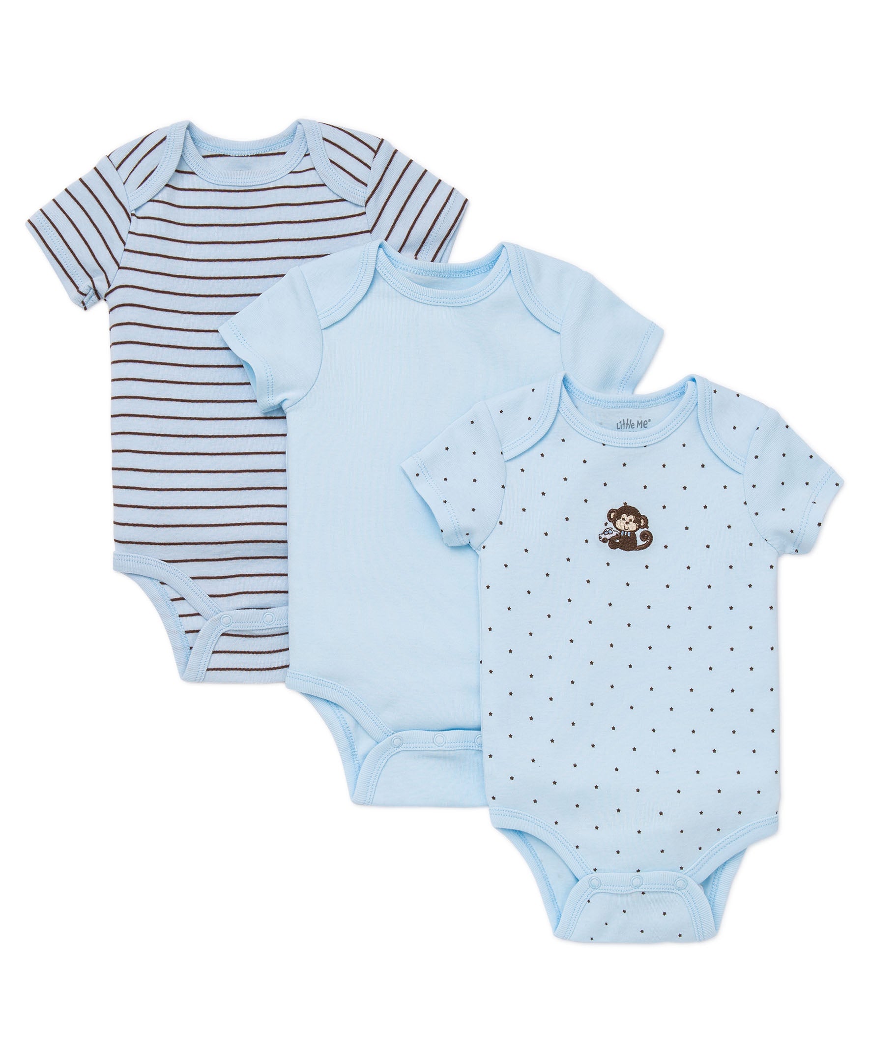 • Crafted in easy-to-clean Cotton, this three-pack of baby boys' bodysuits is sure to be in constant rotation. Includes 1 embroidered bodysuit, 1 stripe bodysuit and 1 solid bodysuit.