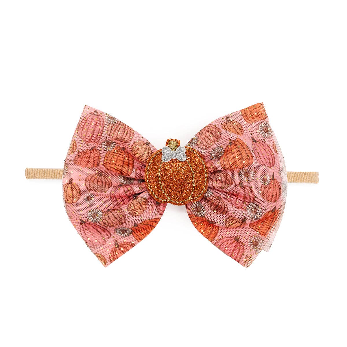 Every baby girl needs the perfect headband to complete her look! The Pumpkin Daisy Blush Tulle Bow Baby Headband is the perfect hair accessory for celebrating Fall. Features: * Pumpkin daisy printed tulle bow with gold glitter pin dot accents * Nylon elastic hair band * Glitter accents are “shed free” * Recommended for babies 0-24 months Pair this headband with a matching Sweet Wink tutu and shirt for a complete head-to-toe outfit!