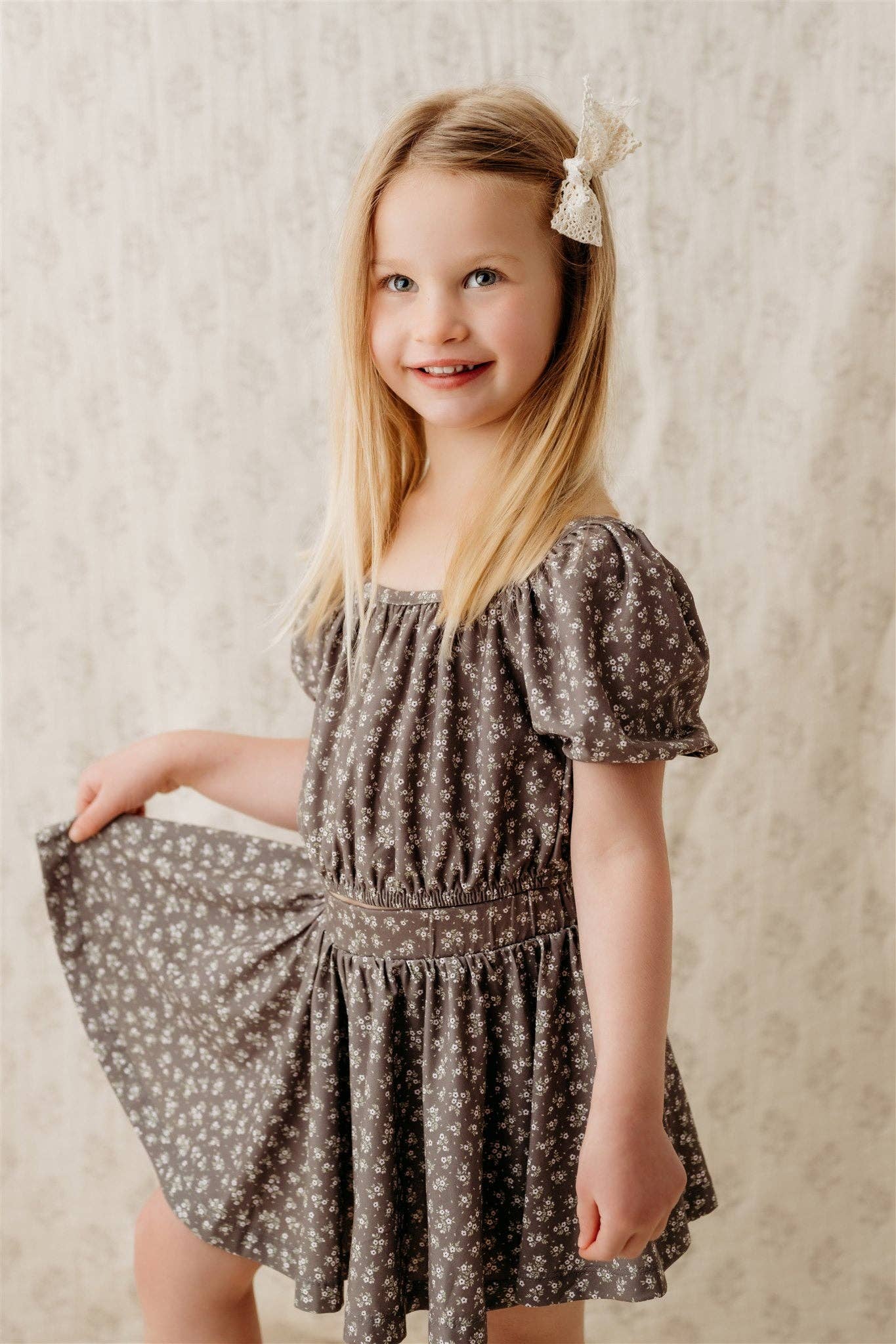 * Soft knit fabric * Includes a top and skort * Elastic waistline on bottom of top * Elastic waistband on skort * Shorts attached