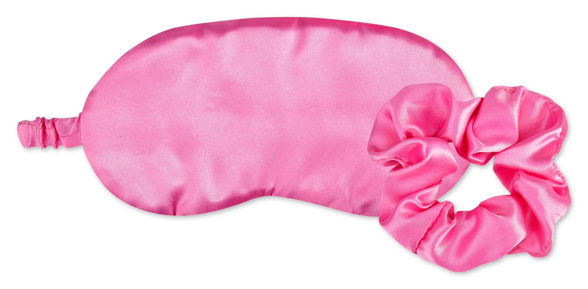 Eye Mask with Satin lining & elastic strap, Packaged in a peggable box, 4" w x 8 3/4" h x 3/4" d.