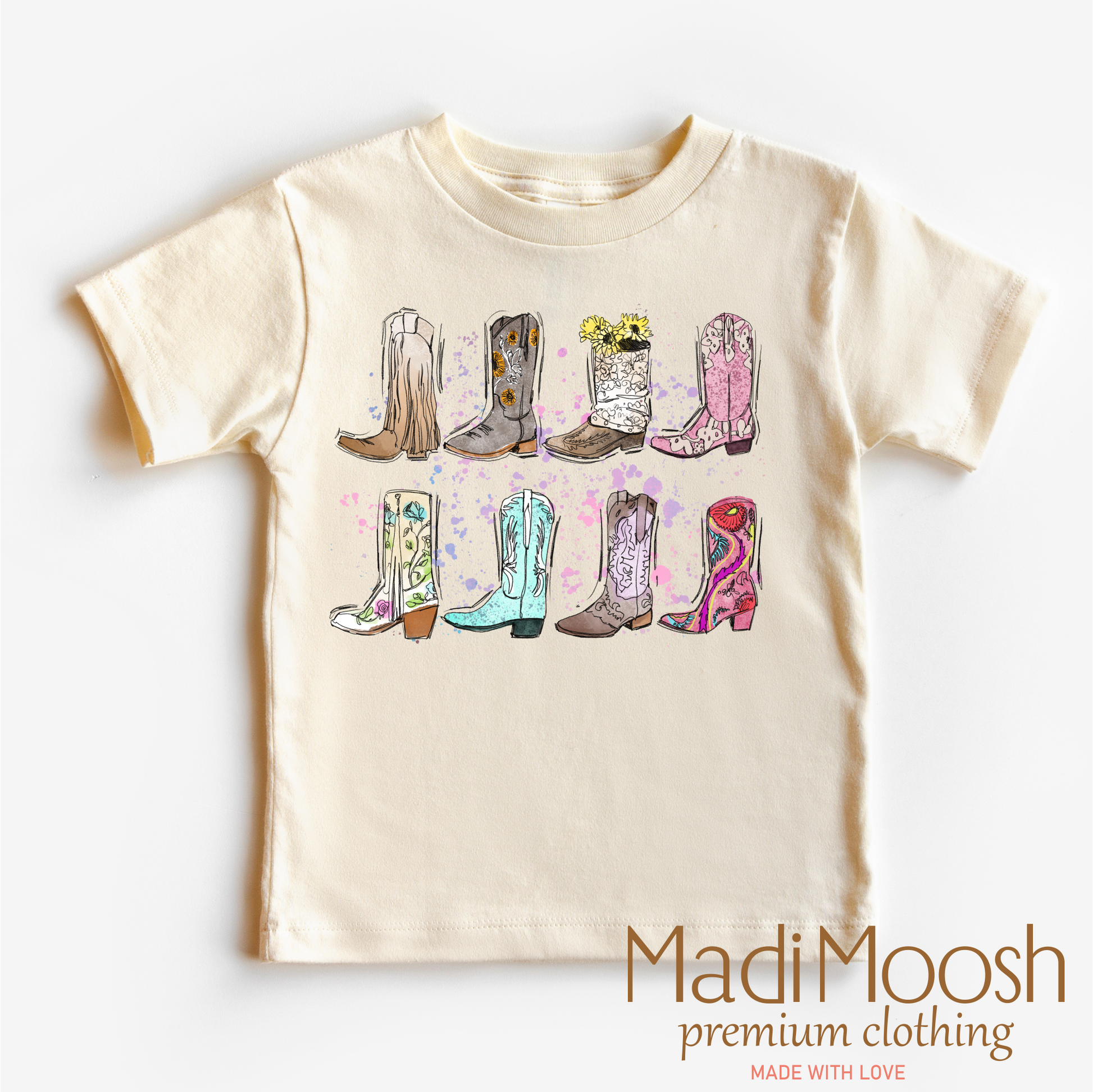 This cute western tee is a must-have for any cowgirl. Made with high-quality materials, this shirt embraces the classic western style and adds a touch of cuteness. Perfect for any occasion, this shirt will make her stand out with its unique design. Add a touch of western flair to their wardrobe with this cute Cowgirl Boots Shirt.