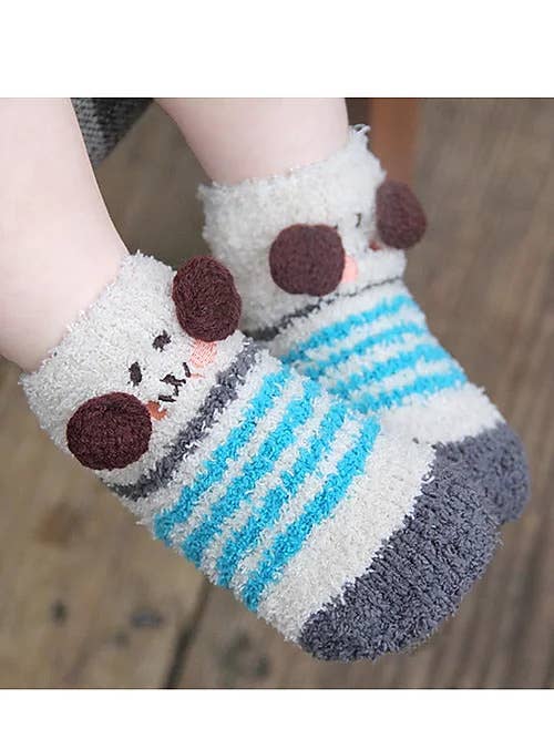 80% organic cotton and 20% velvet. Organic cotton knitted anti-slip socks that will stay on your little ones´ feet throughout all their adventures. Will help prevent tootsies from getting cold in the colder days as they are woolly eco-friendly cotton. For kids of (0-24 months).