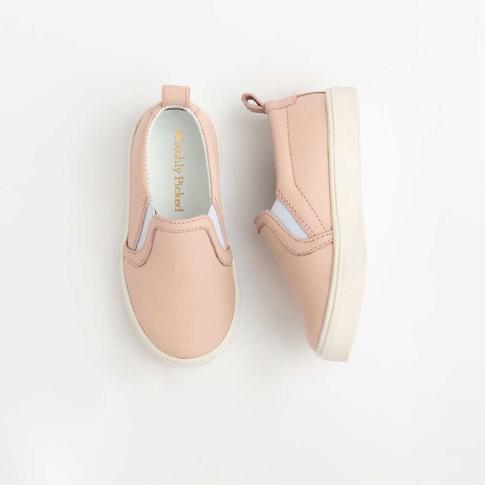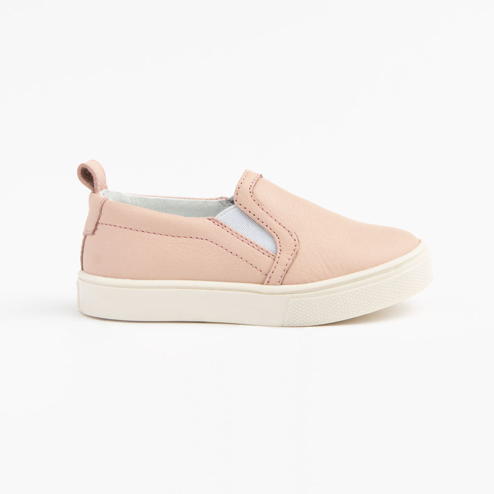 For the NEXT step in a kid's life, slip into our brand-new Slip-On Sneakers! Made of our genuine leather inside and out, textured rubber soles, a back pull tab, and stretchy elastic openings for any easy-on and off experience. There won't be any slipping and sliding in these puppies!