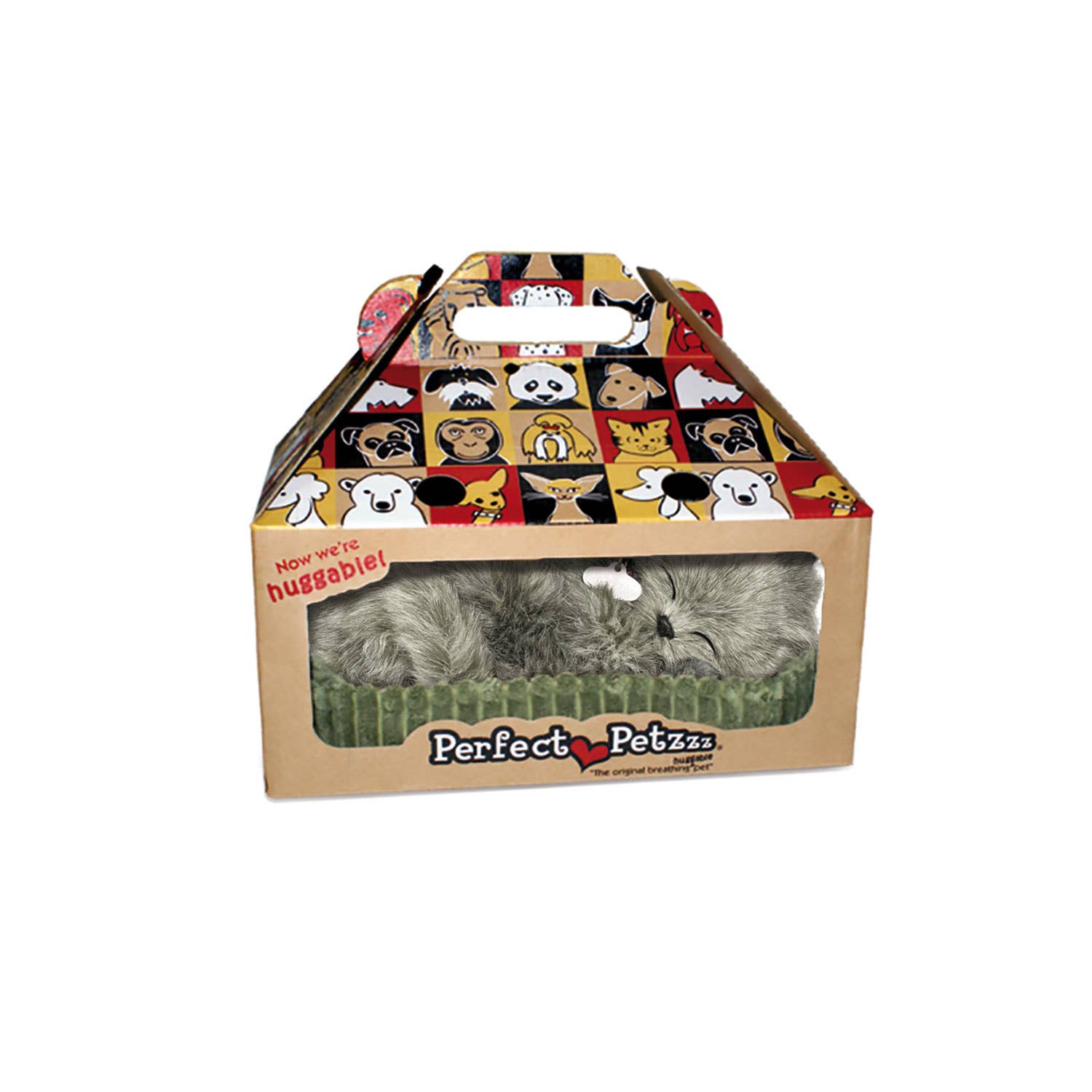 The gray shorthair kitten has an aristocrat flair. It is a very sweet, loving, and loyal kitten. Each bundle includes: + new pet. + collar with a pet tag. + new plush pet bed. + brush + adoption certificate. + 1 'D' alkaline battery. + 100% synthetic fur. Dimensions: + carrier box (flat): 11x7.75x5" (with the tent up: 11x7.75x9"). + bed: 13x10x2". + petzzz: 9.5x7x3".