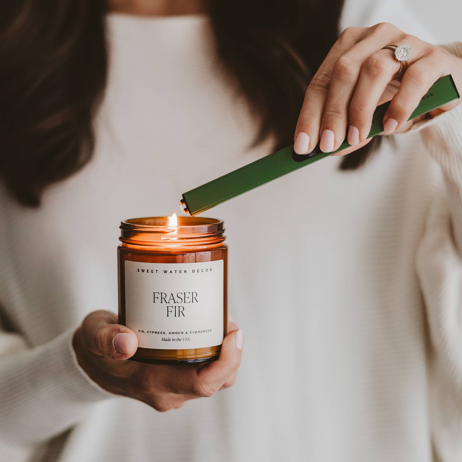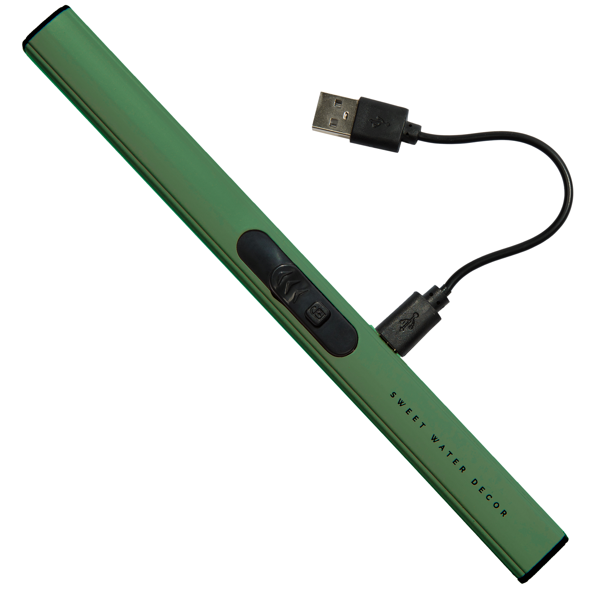 Our electric lighter is sleek and modern looking, while also being environmentally friendly. The ultra-thin design and sleek green finish make this lighter an attractive accessory. Each lighter is individually packaged in our custom-designed packaging and will display beautifully in your shop. Pair it with our candles for a well-rounded display! DETAILS: • Color: Green • Size: 7 x 0.5 x 0.31" • Material: Aluminum Alloy • Includes 6.75" long USB charging cord • Designed in the USA, Imported • Style No. LT010 CAUTION: • Handle Lighter with Care • Keep Out of Reach of Children • Keep Away from Hot Surfaces CATEGORIES: • Housewarming, Birthday, Office Party, Hostess Gift, Gift Exchange, White Elephant, Cash Wrap, Functional Home Decor, Coffee Table Accessories, Shelf Styling, Stocking Stuffers STYLE: • Modern, Simple, Rustic, Farmhouse, Modern Farmhouse, Mid-Century Modern, Industrial, Vintage, California Coastal, Neutral