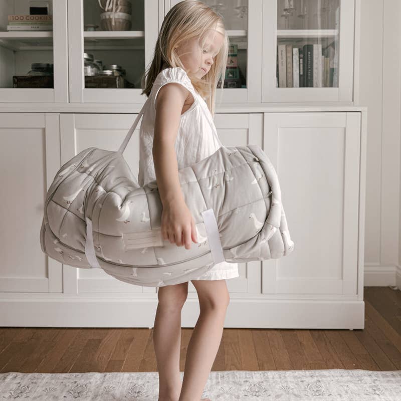 Extra padding on the bottom for luxurious cushioning Removable cloud pillow for easy washing Featuring our unique zipper to keep those Littles tucked in and cozy for nap time. Blanket TOG: 1.0 Size: 52" x 25.5" x 5"