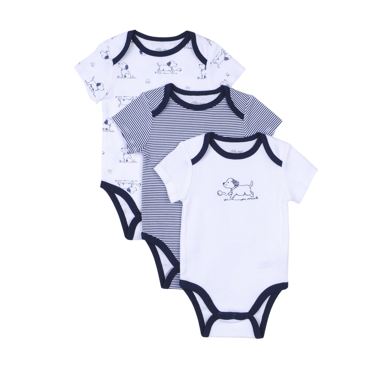 • These 3 different bodysuits are essential for baby boy's first wardrobe. Made from soft cotton, they are both durable and gentle against baby's skin.