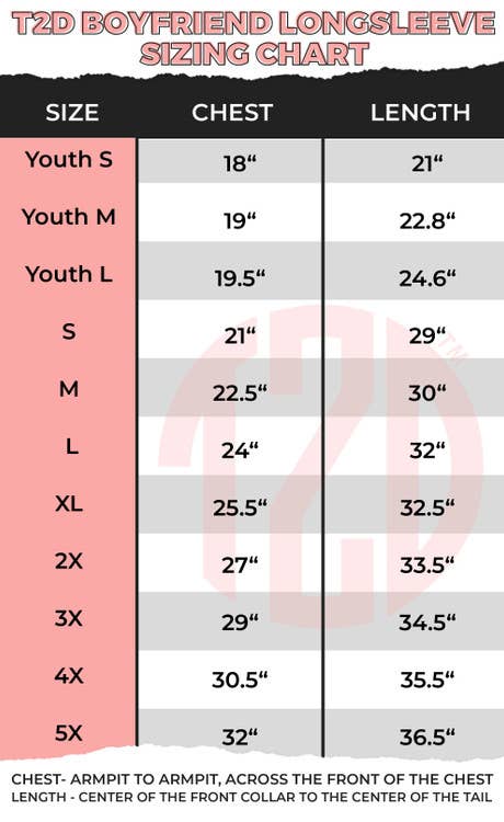 Sizing Hint: This is a boyfriend cut long sleeve tee, which fits a bit oversized, size down if your in between sizes. See additional images for sizing charts.