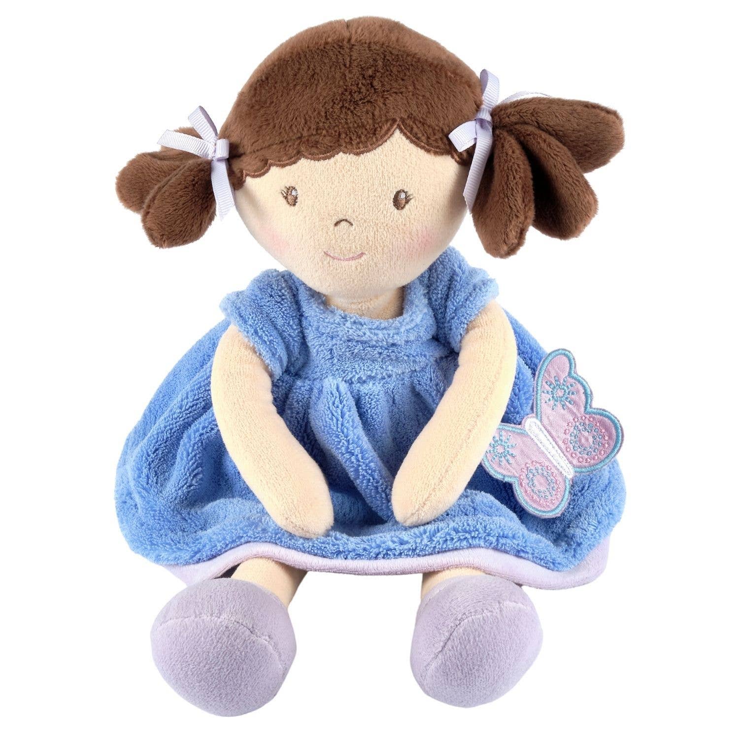 Features: Soft body doll with plush hair, embroidered facial features and decorative butterfly trim. Dress is removeable.