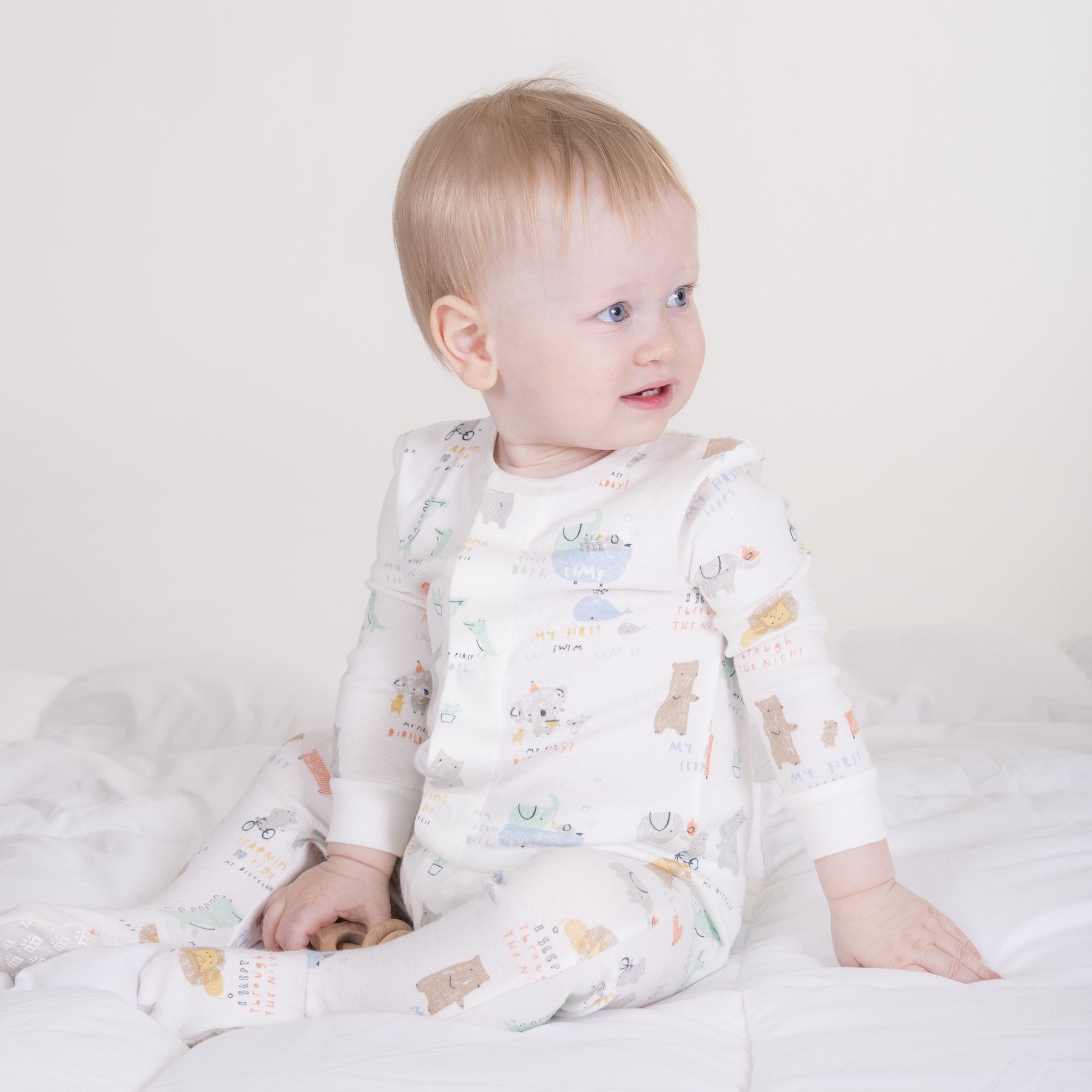 *NB & 3M sizes open from neck to upper thigh and have mitten cuffs. *6M-24M sizes open from neck to crotch with a roomy seat for easy diaper changes. *9-12M sizes & up follow tight-fitting standards and are meant to be snug. Order one size up if your child is on the mid to high end of our size chart.