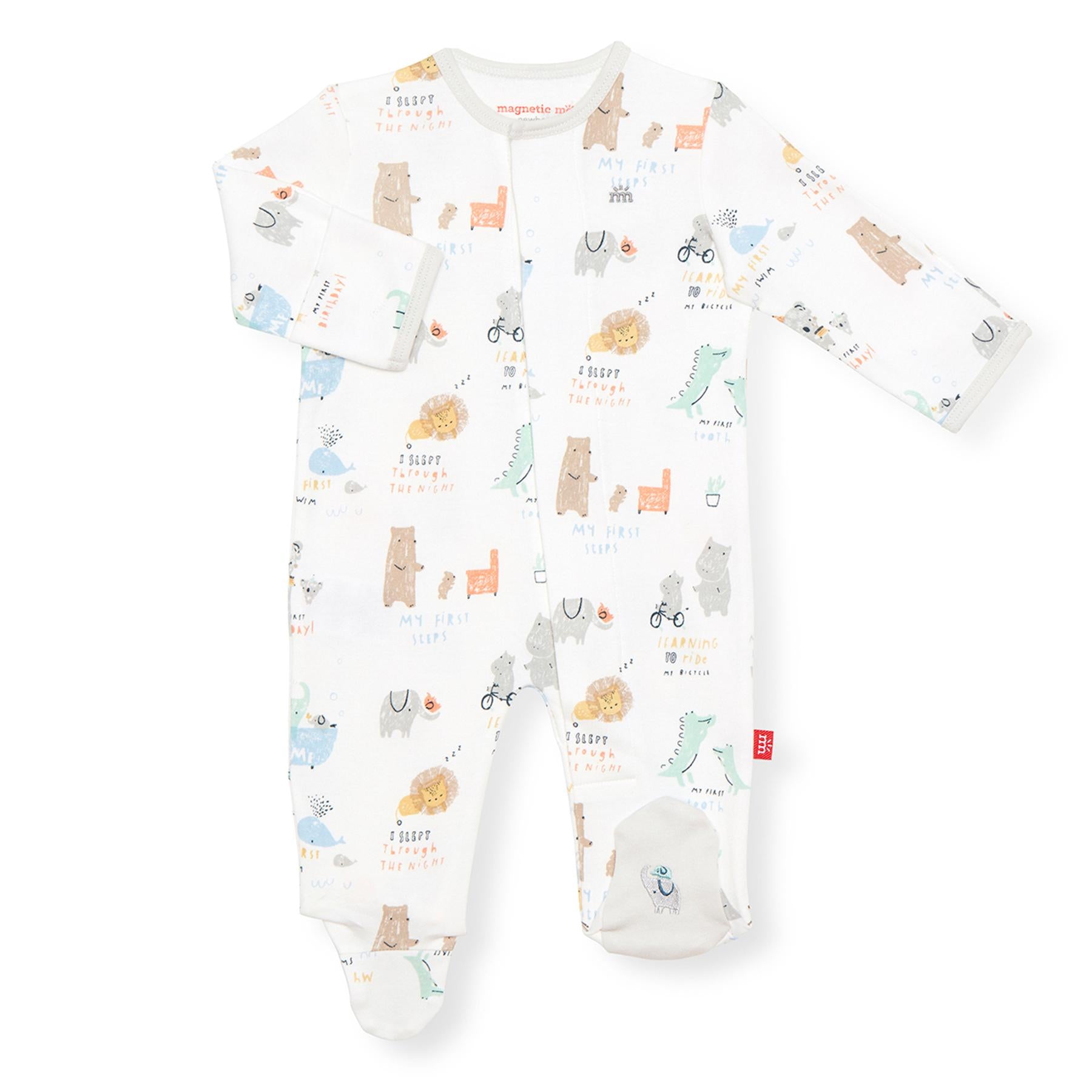 Our super silky soft and eco-friendly Magnetic Modal footie, featuring our time-saving magnetic fasteners and no over-the-head design, gets baby dressed faster than Clark Kent turns into Superman! No longer dread night changings – simply open outfit, insert baby and the outfit practically dresses itself! Perfect gift for new parents and a must-have staple for every baby’s wardrobe. Pack a spare in the diaper bag for on-the-go changes. Modal is certified as a 100% Bio-based fabric by the US Department of Agriculture, responsibly farmed from Beechnut trees.